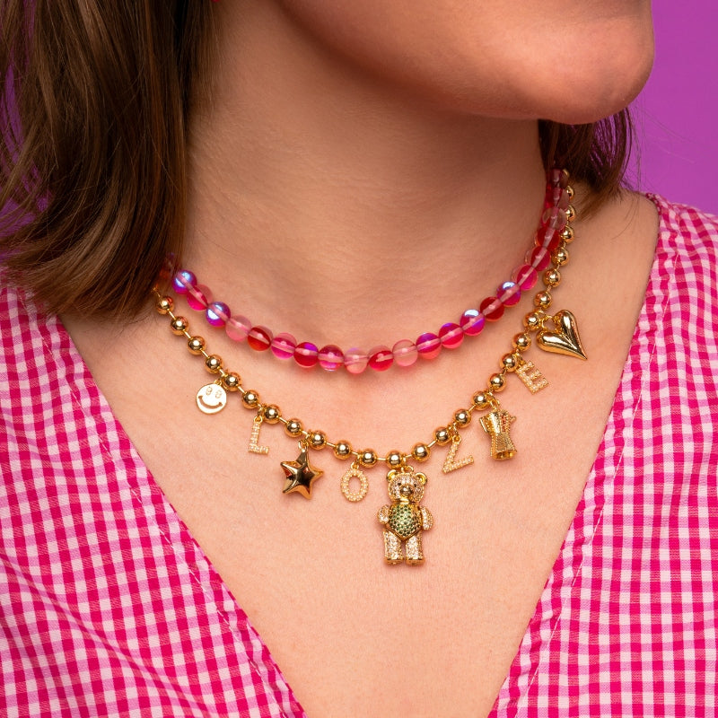 Add a little fun and a lot of love to your style with the Teddy Love Note Necklace! This golden beauty features an adorable teddy bear pendant sparkling with colorful zirconia, paired with playful "LOVE" pearl letters that bring extra charm. It’s cute, quirky, and perfect for anyone who loves a touch of whimsy in their jewelry. Whether you’re gifting it or keeping it for yourself, this necklace is all about spreading joy and good vibes!