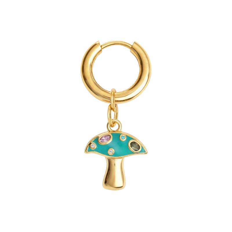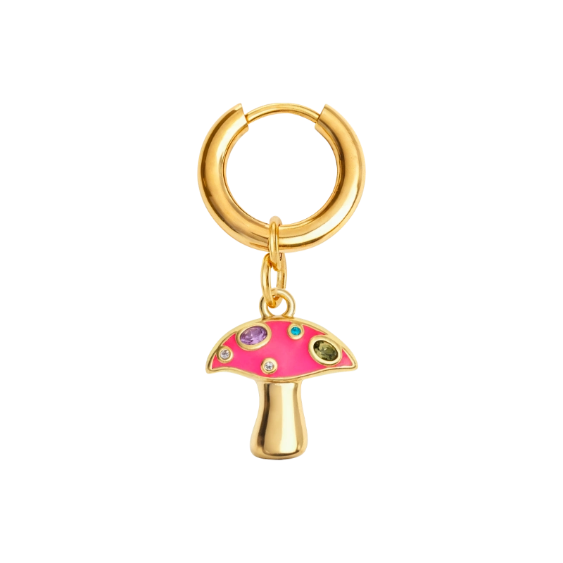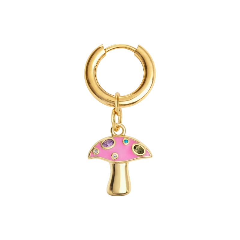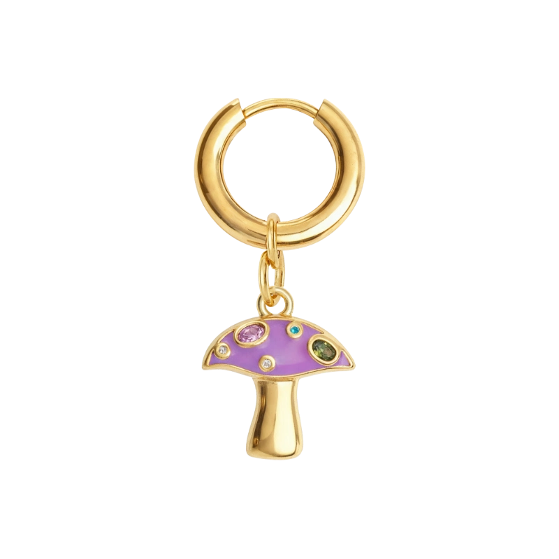 Meet the cutest shroom in town — the Fruity Shroom Earring comes in turquoise, lilac, hot pink and soft pink, each sparkling with inlaid colorful stones. Sweet, sparkly, and full of personality, these playful mushrooms add a pop of magic (and mischief) to every look. 🌈💫