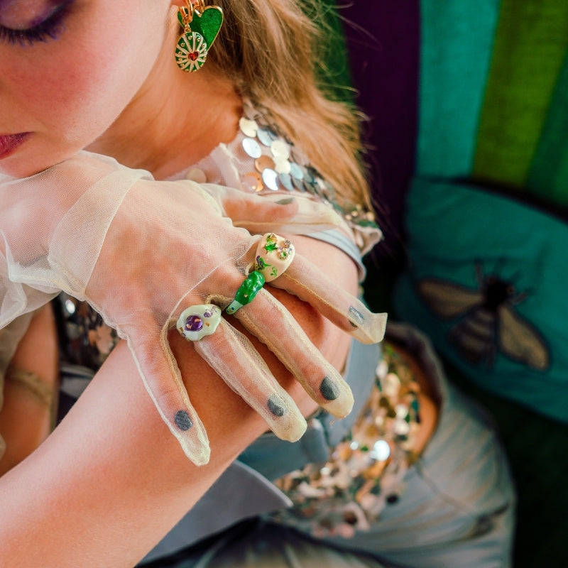 Crafted with individuality in mind, our Atelier line's unique ring showcases an intricate dance of precious metals, acrylics and gems, a wearable work of art that reflects your distinct essence.